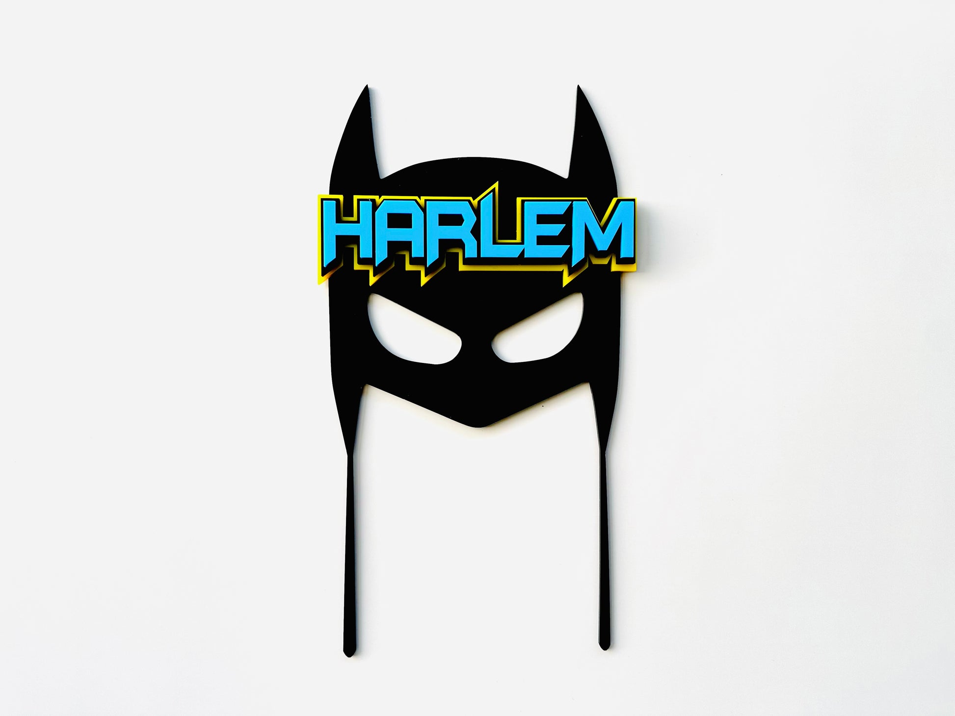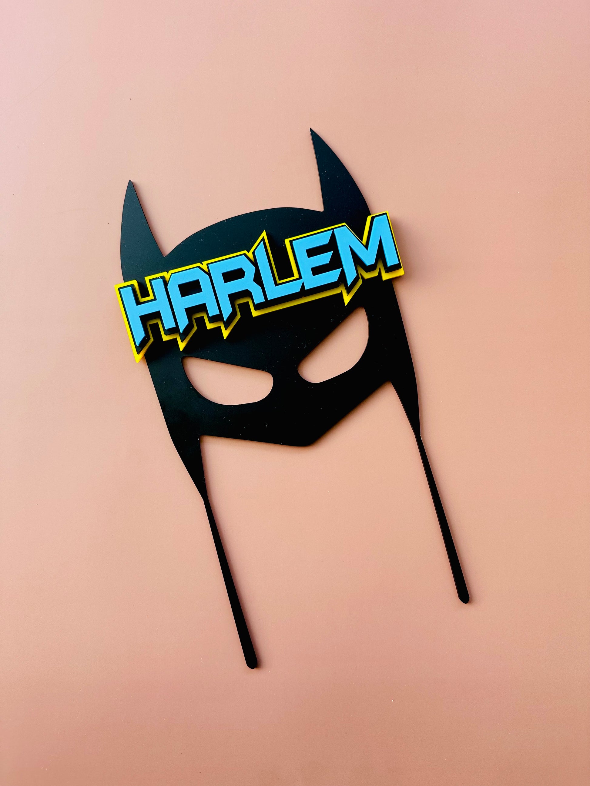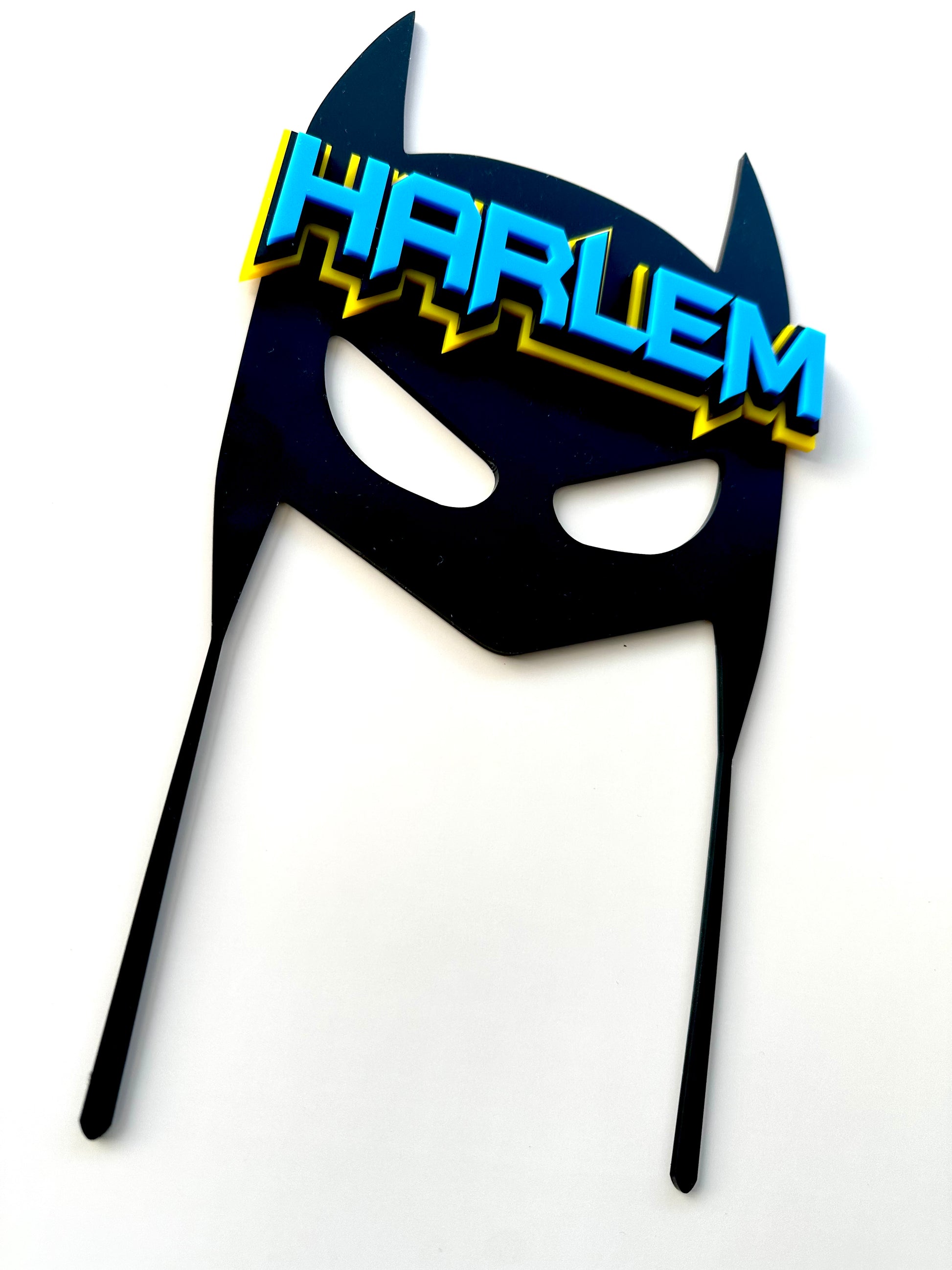 Personalised Bat Man Superhero Mask Acrylic Cake Topper.