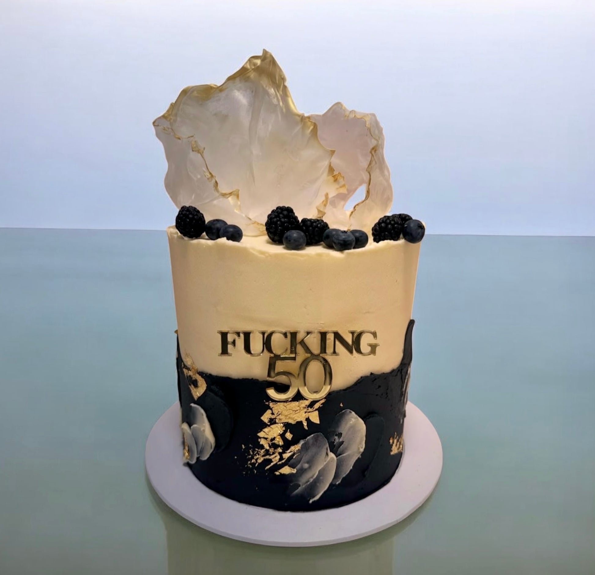 Make a clear statement with this style of cake fropper...designed as a tongue cheek fun way to finish your cake.