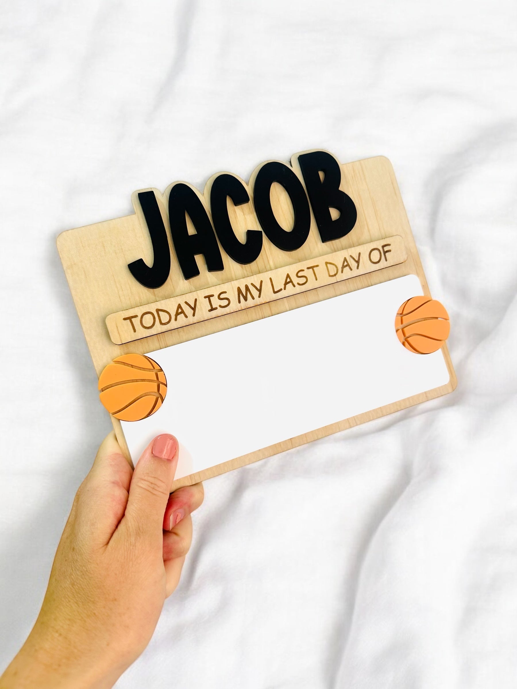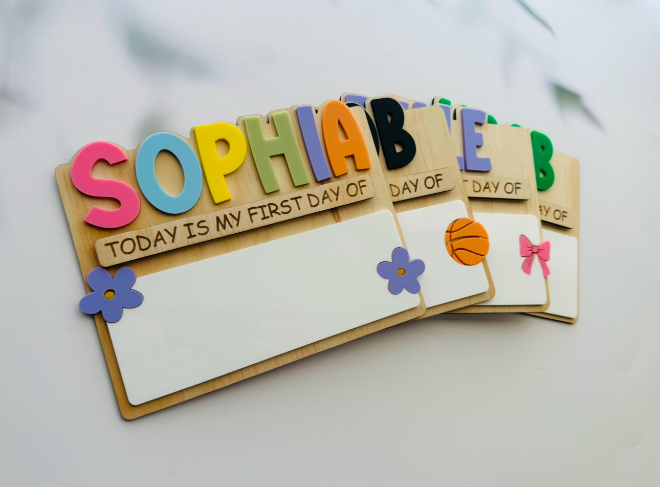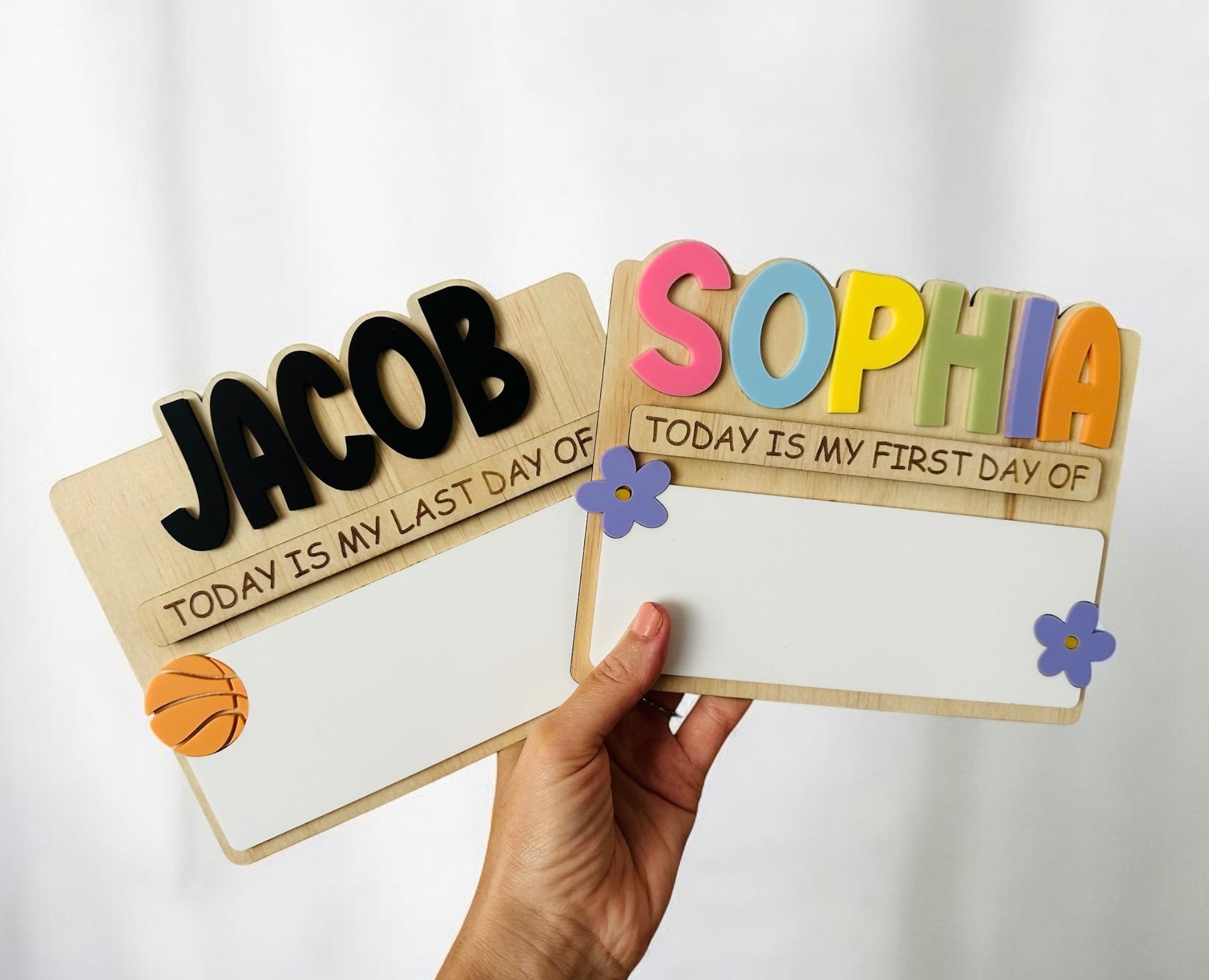 You receive 2 x pieces of timber with the phrase's "TODAY IS MY FIRST DAY OF" and "TODAY IS MY LAST DAY OF" that you can easily swap out to suite the occasion.