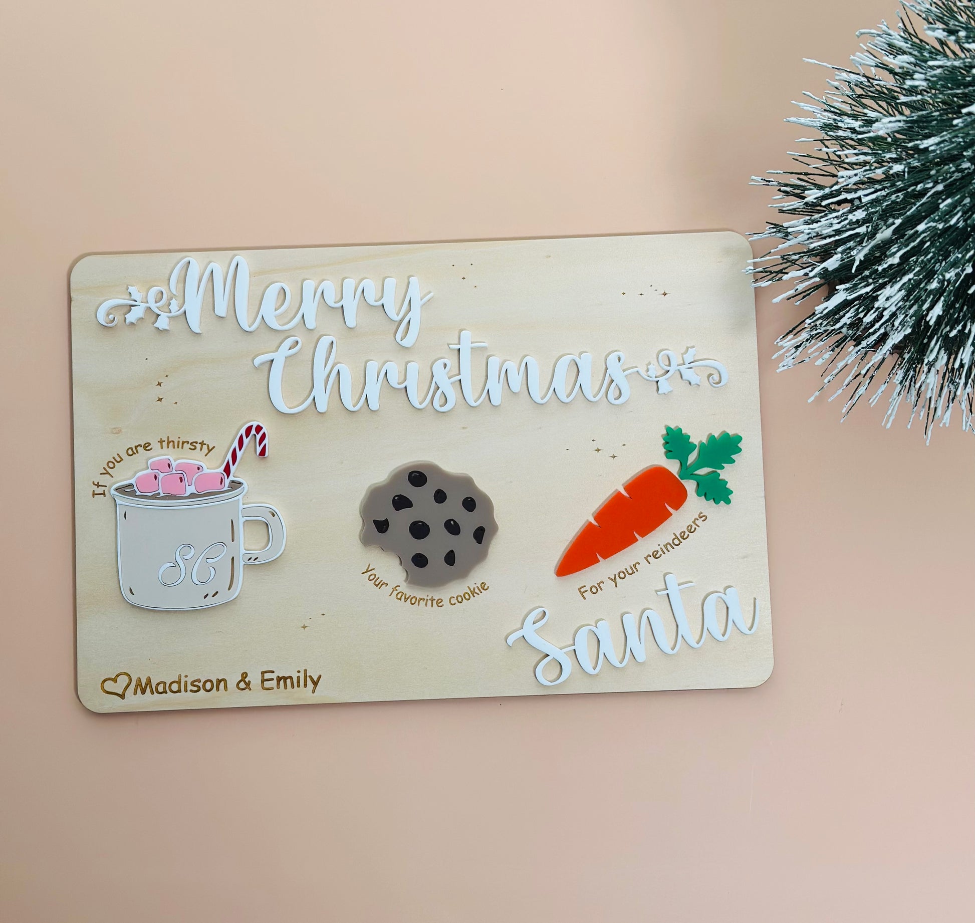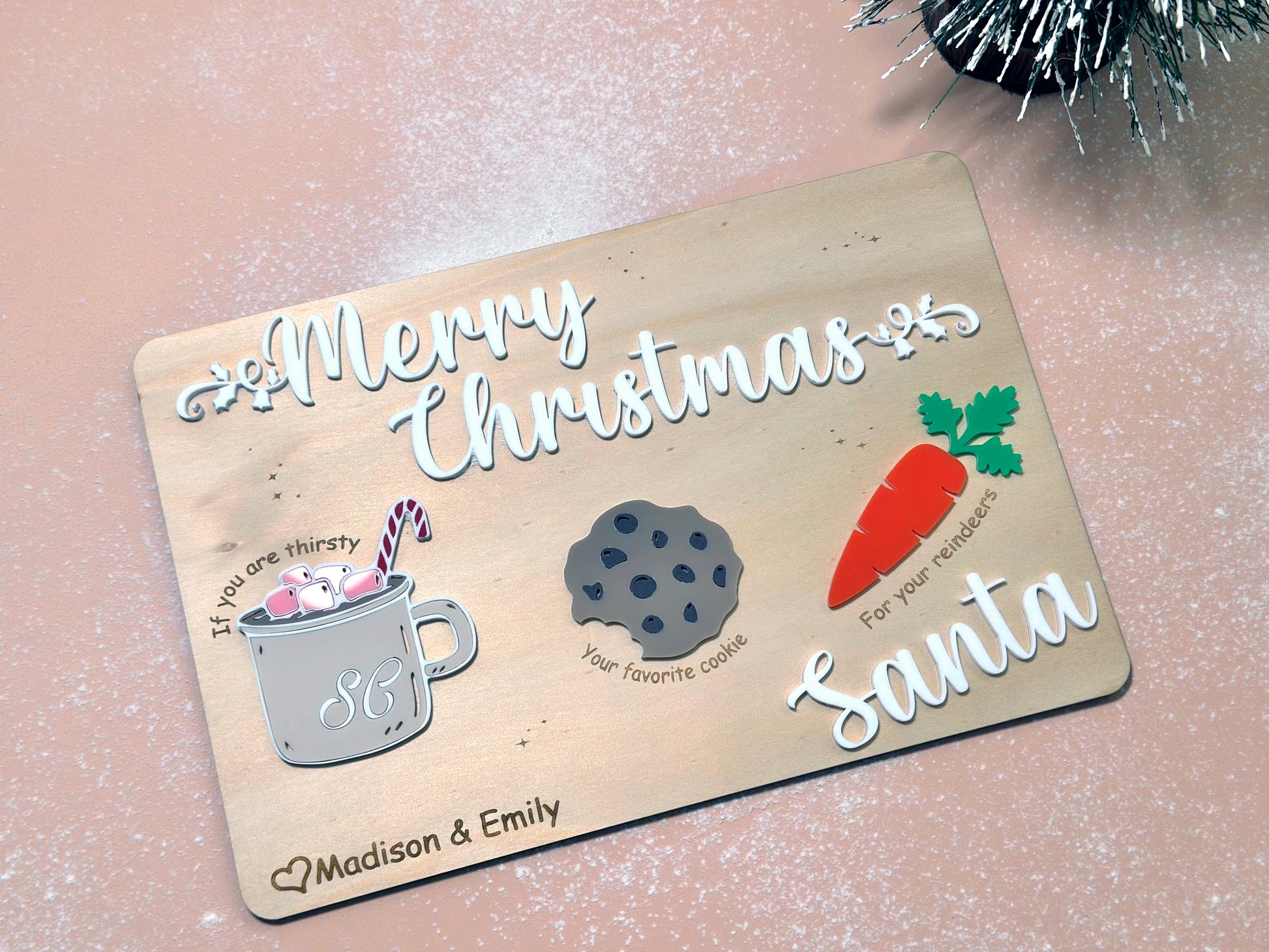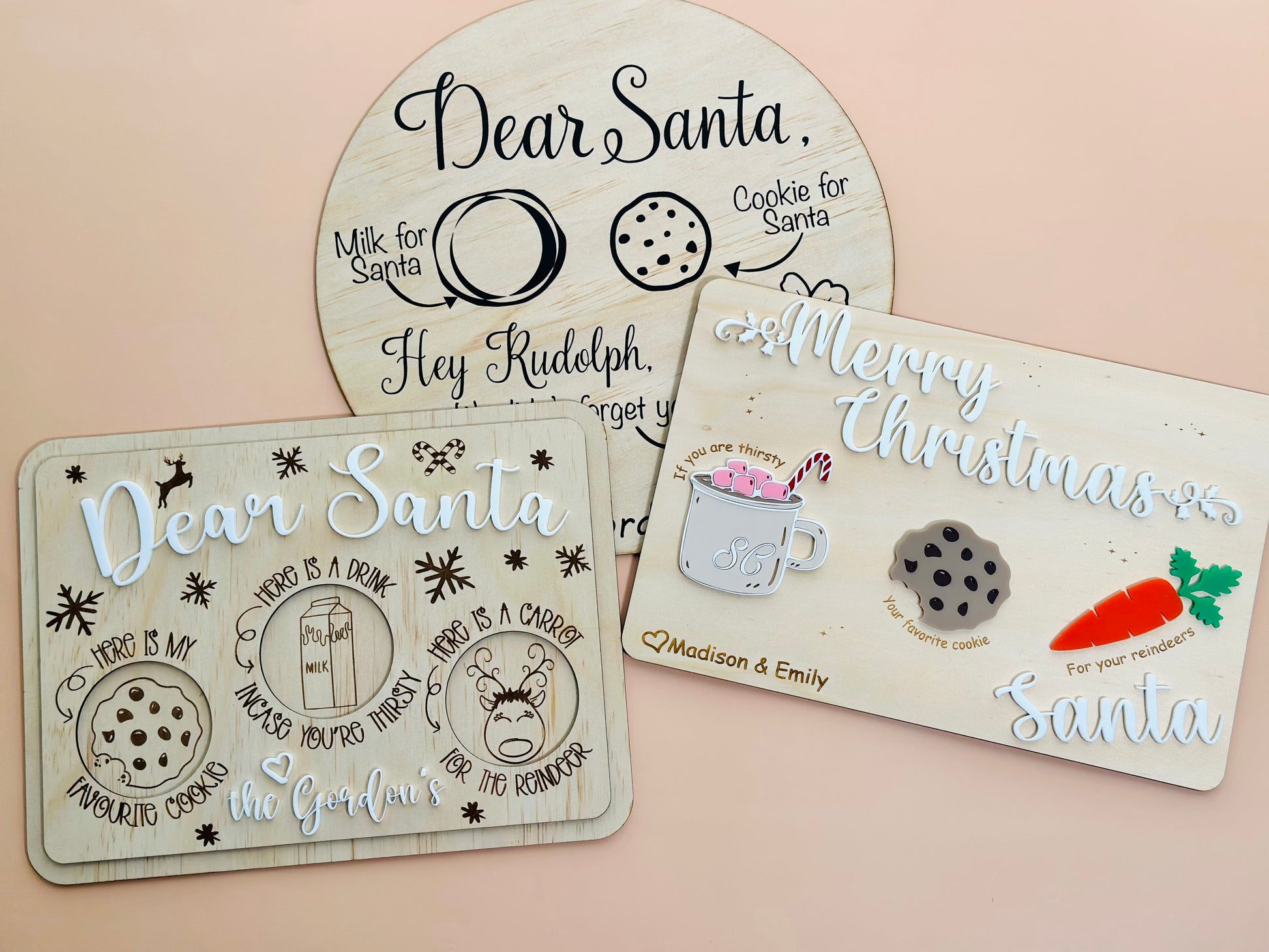 Keep Santa and the reindeer happy and watch your little ones eyes light up as they place a drink, cookie and carrots on their own personalised board christmas eve.