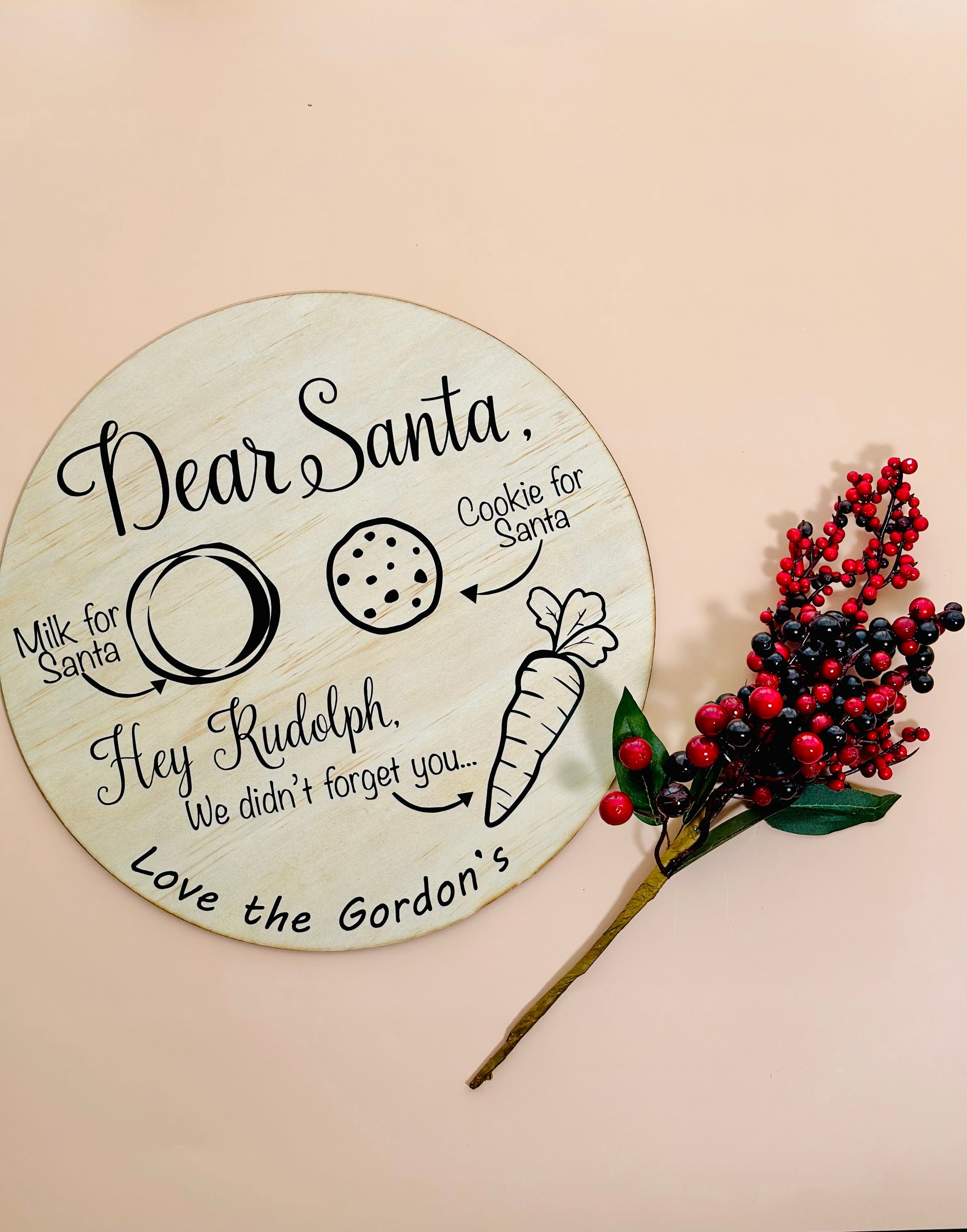 Made from timber and using laser engraving, we have our Round shaped personalised Santa milk and cookies treat board.