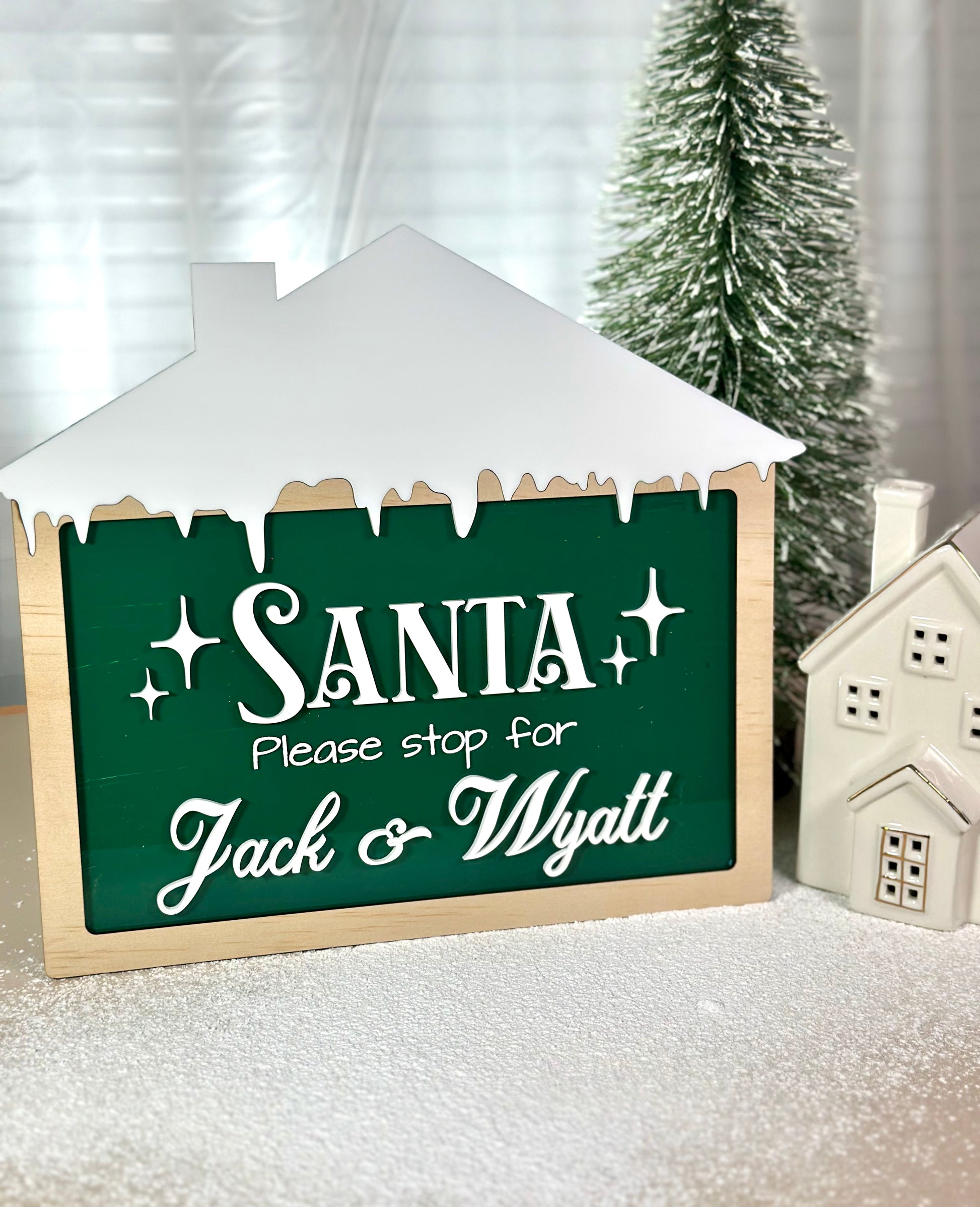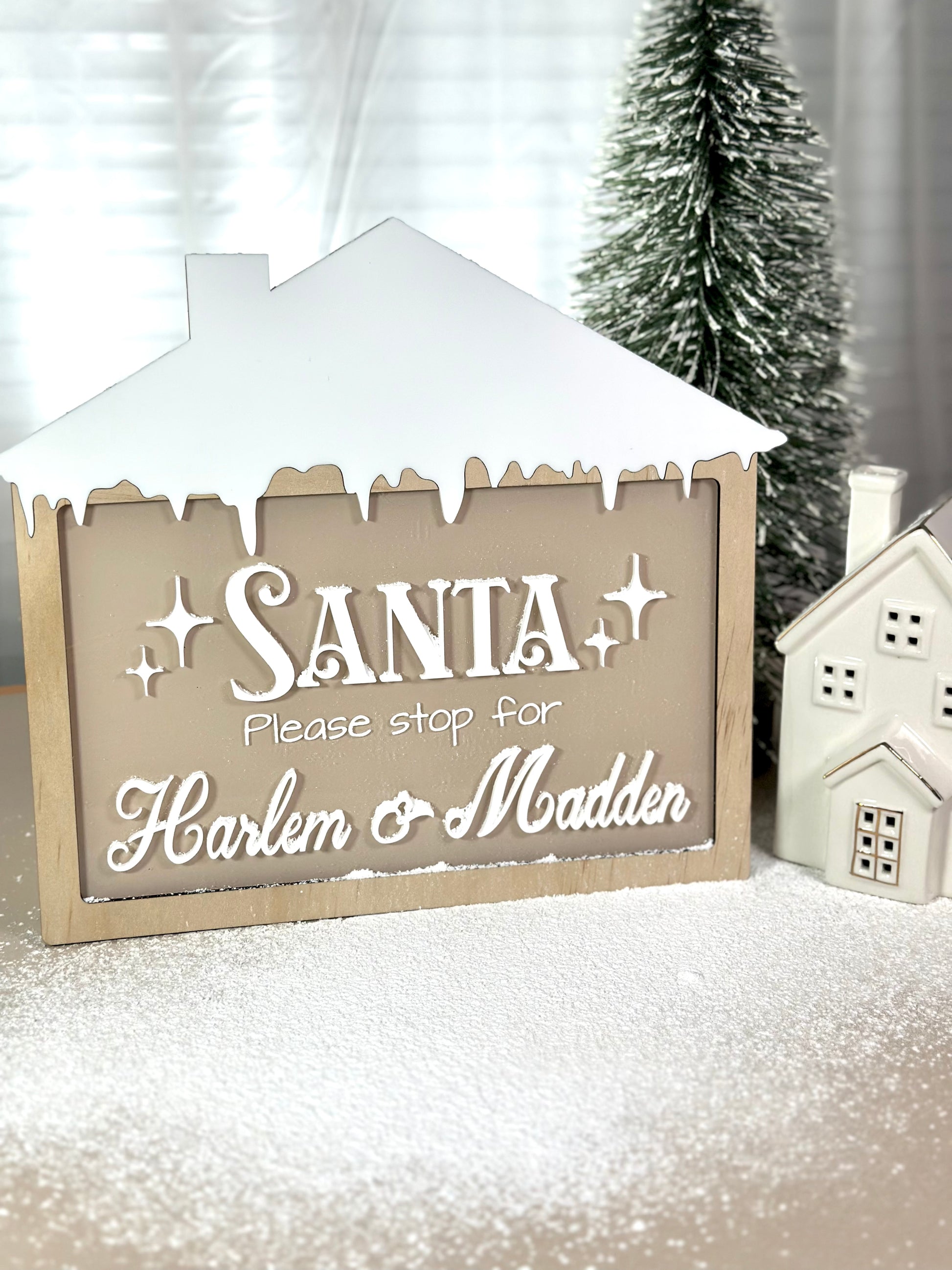 Our please stop Santa signs are the perfect decoration to add to your Christmas set up and are suitable to be placed on a mantelpiece / shelf or add some double-sided tape and mount to a door or wall.