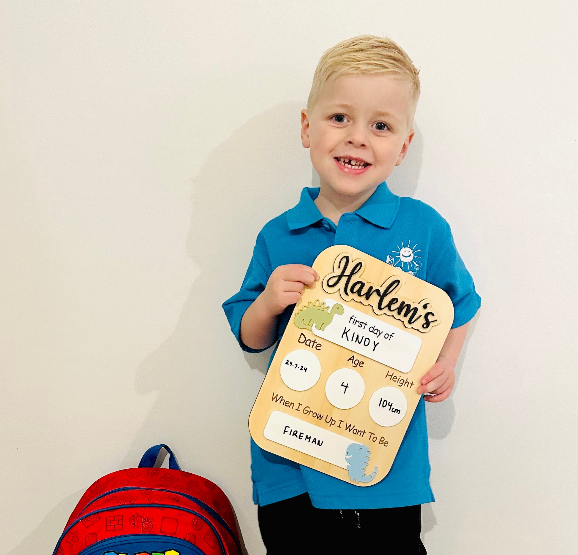 Personalised first and last day school board in our dinosaur theme.