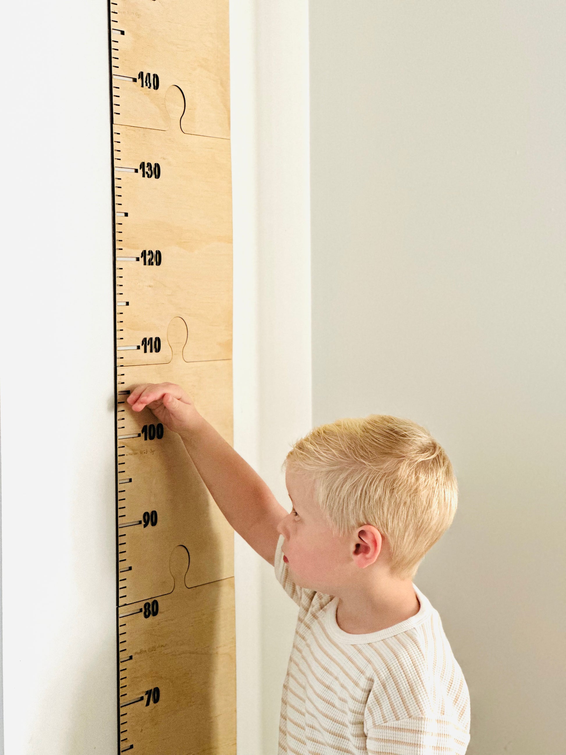 Laser cut and engraved from natural plywood the individual jigsaw style pieces join so you can record your whole family as they grow.
